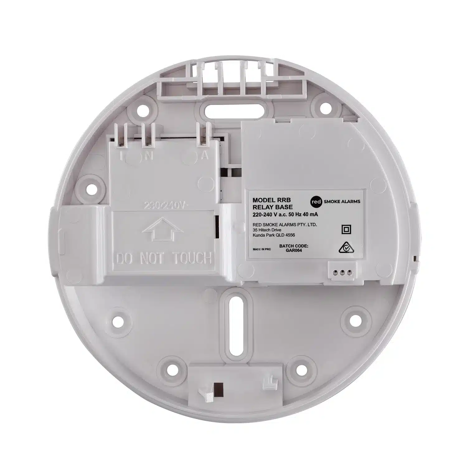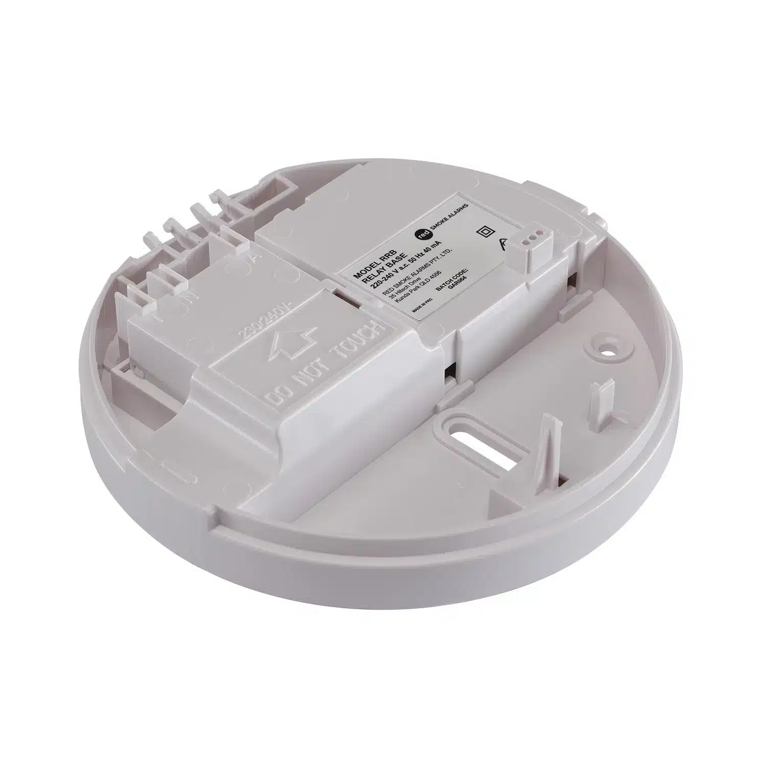 The Red Relay Base integrates Red Smoke Alarms with devices like lights & sirens. Relay can be configured to operate only when the local alarm is activated or when any connected alarm activates.